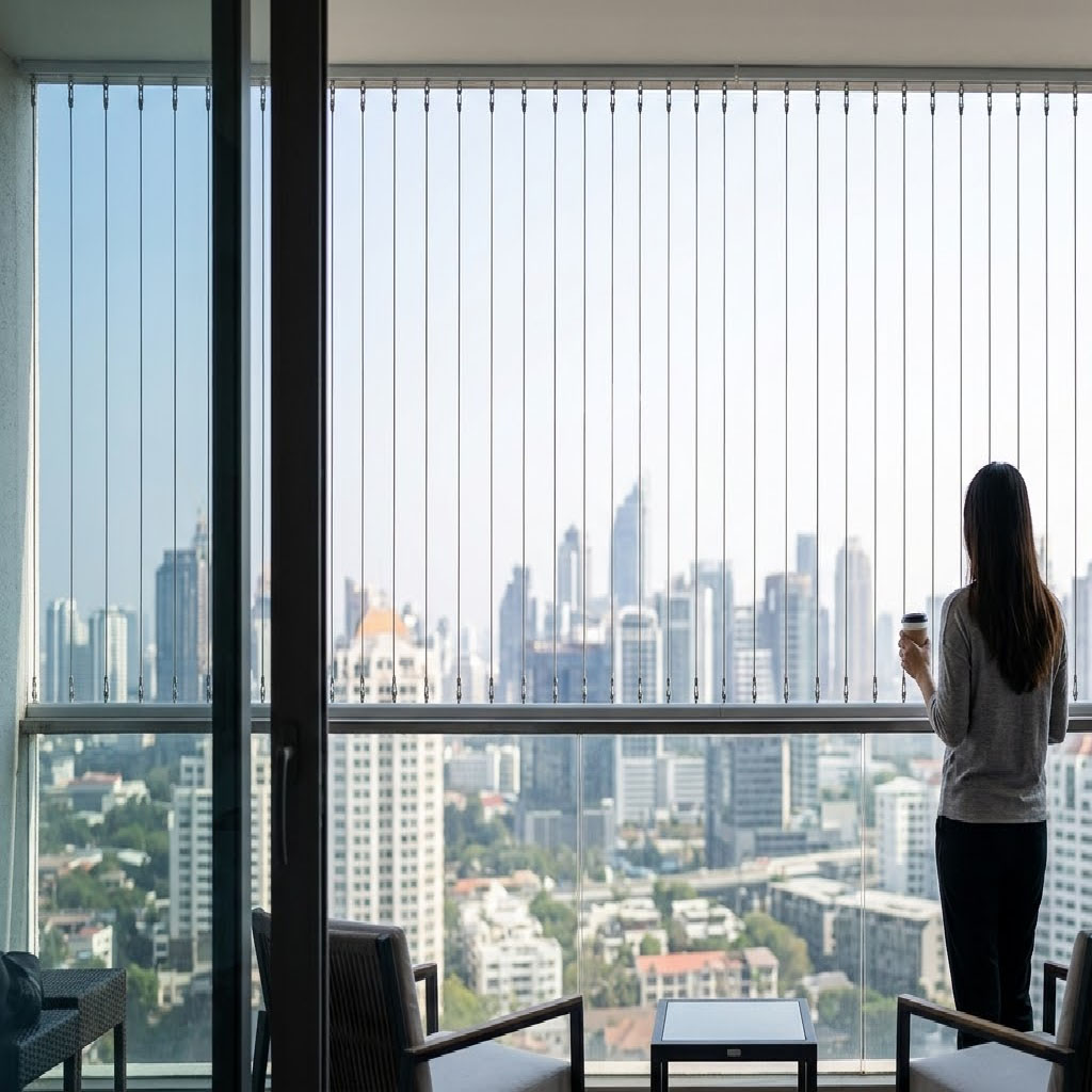 Invisible grills for private homes offer modern safety for balconies and windows. Strong stainless-steel cables protect children and pets without blocking views.