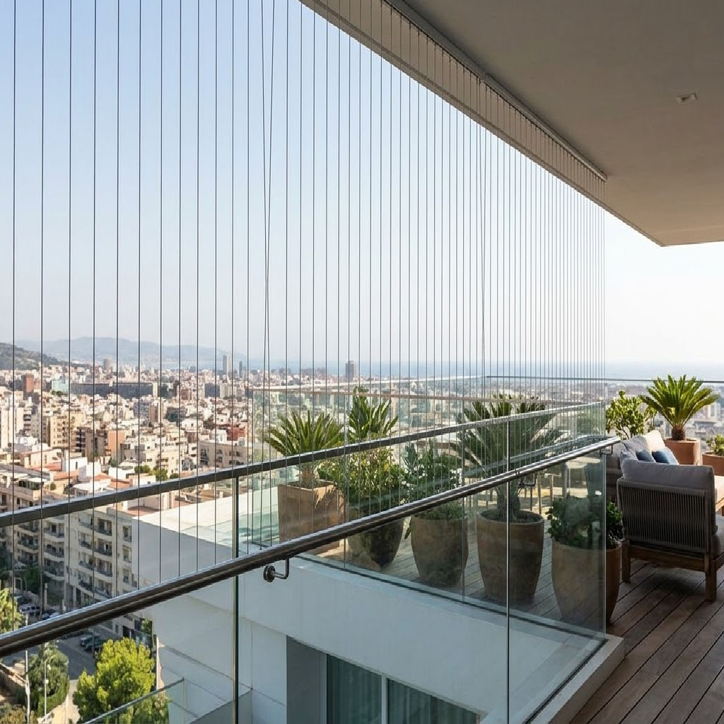 Invisible grills for private homes offer modern safety for balconies and windows. Strong stainless-steel cables protect children and pets without blocking views.